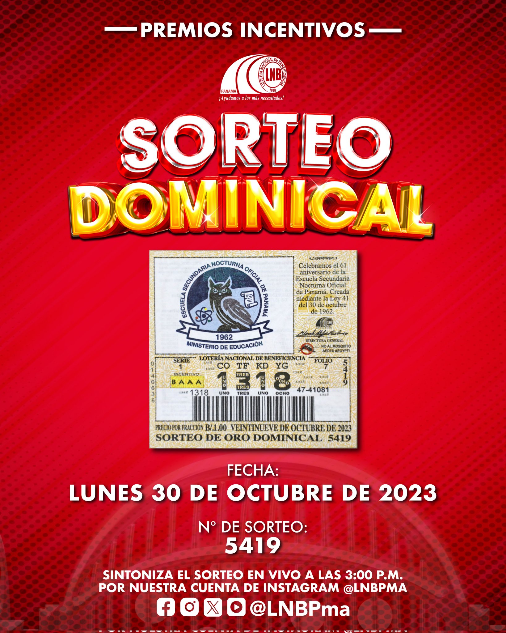 — Lotera Nacional Pm (@lnbpma) October 30, 2023