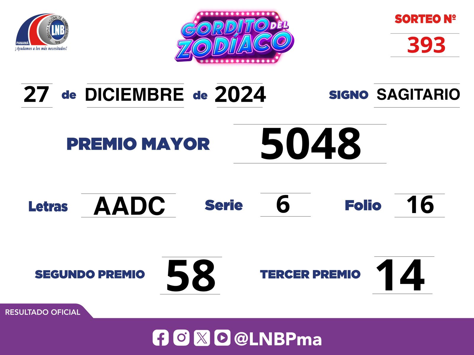 Lotería Nacional de Panamá - Gordito del Zodiaco del viernes 27 de diciembre
