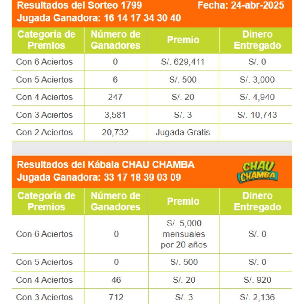 CHAU CHAMBA | Resultados del jueves 24 de abril.