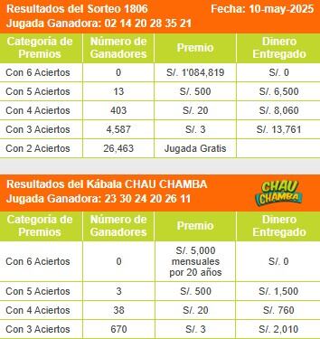 CHAU CHAMBA | Resultados del sábado 10 de mayo.