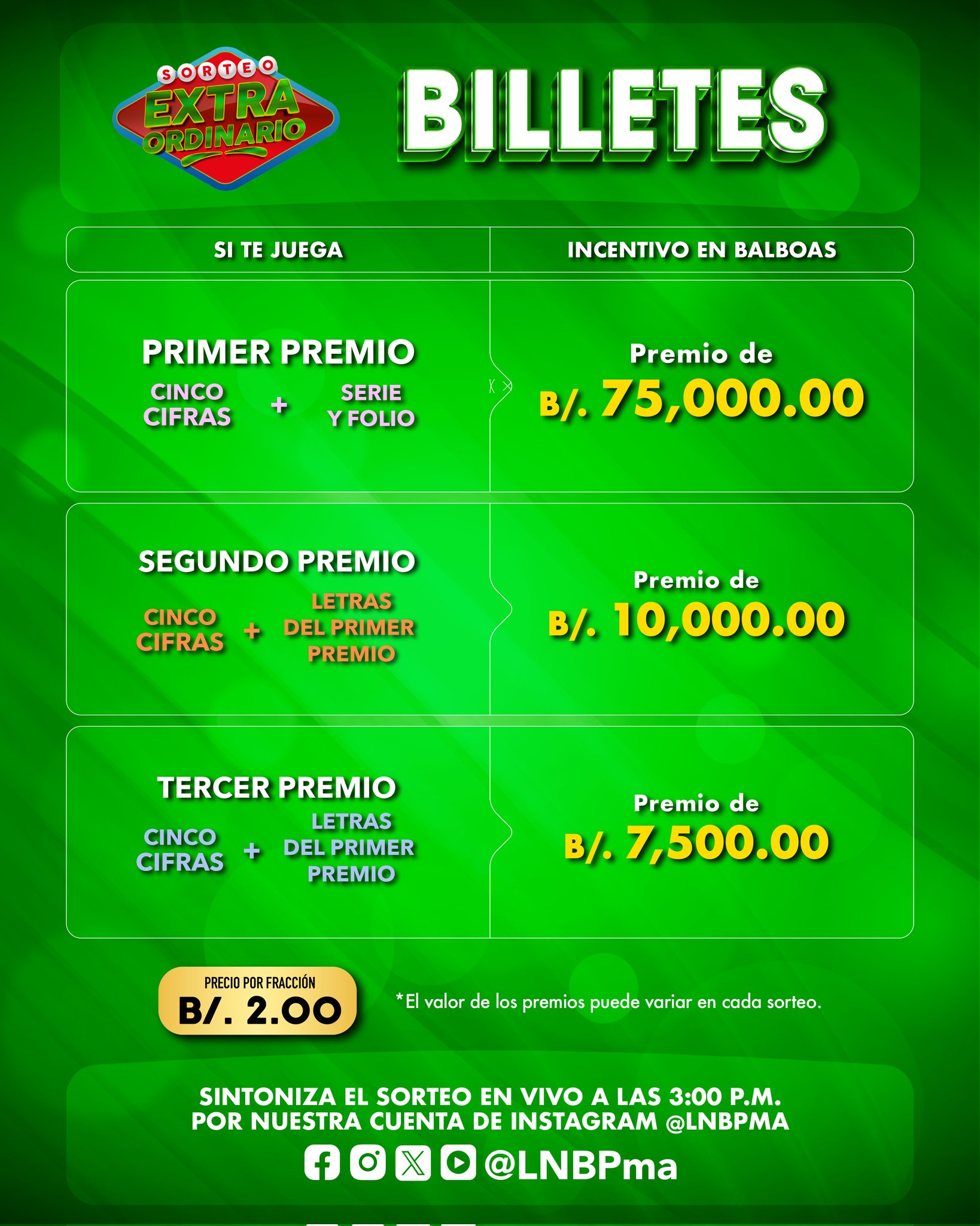 Lotería Nacional de Panamá Sorteo Extraordinario del domingo 17 de agosto
