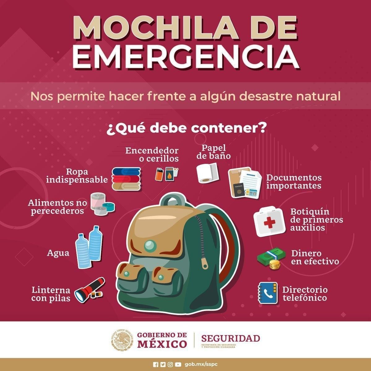 REVISA LO QUE UNA MOCHILA DEBE EMERGENCIAS PARA EL HOGAR DEBE CONTENER.