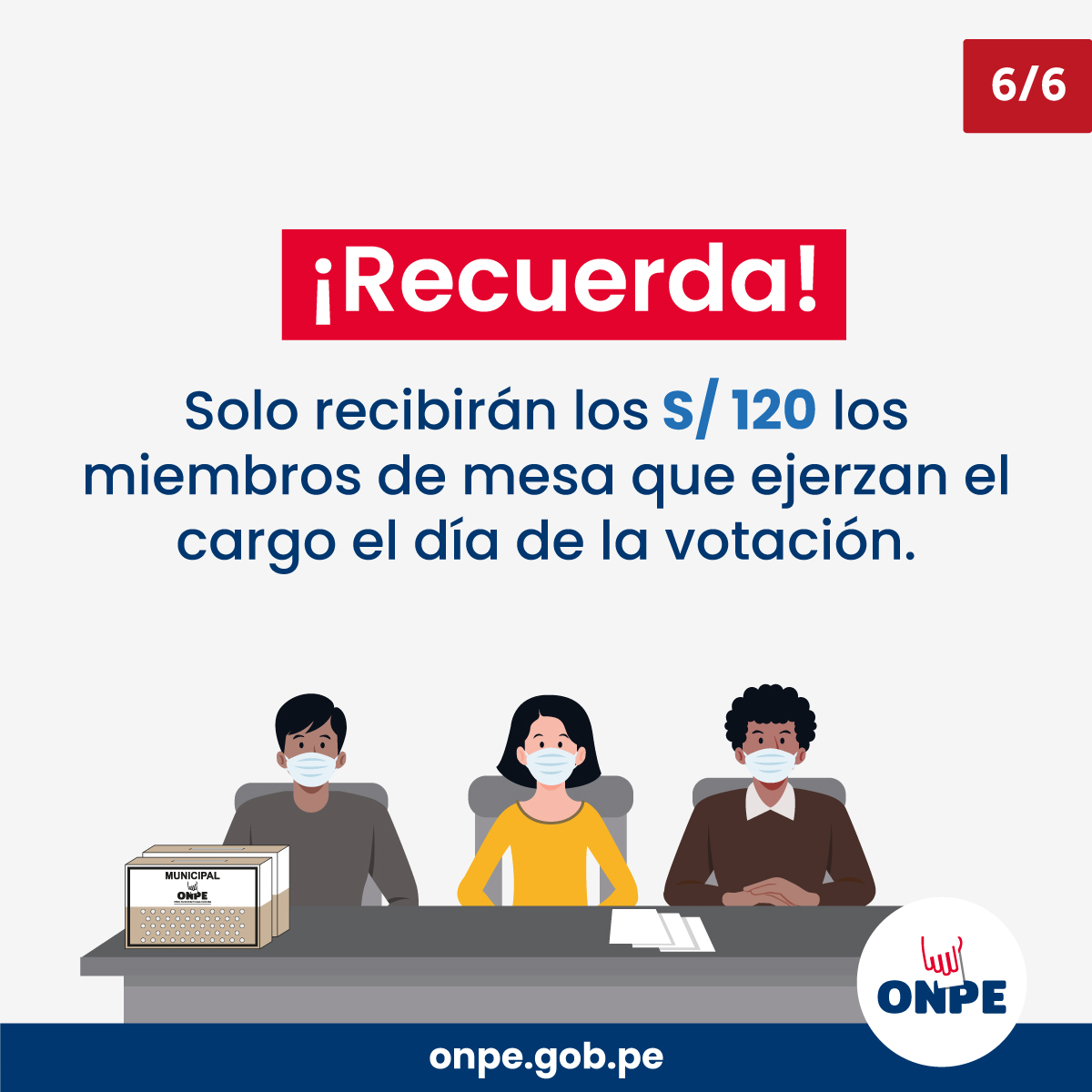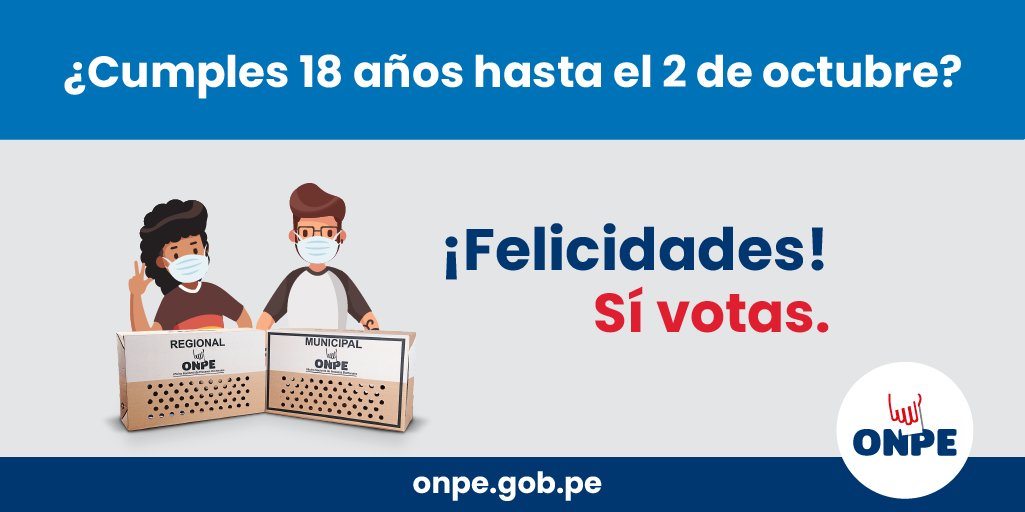 ¡Recuerda! No necesitas presentar tu carné de vacunación para votar en las elecciones regionales y municipales del 2 de octubre.