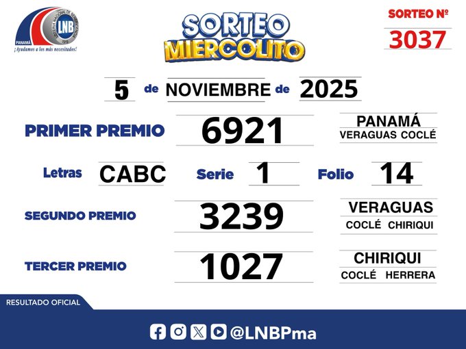 Lotería Nacional de Panamá del jueves 6 de noviembre