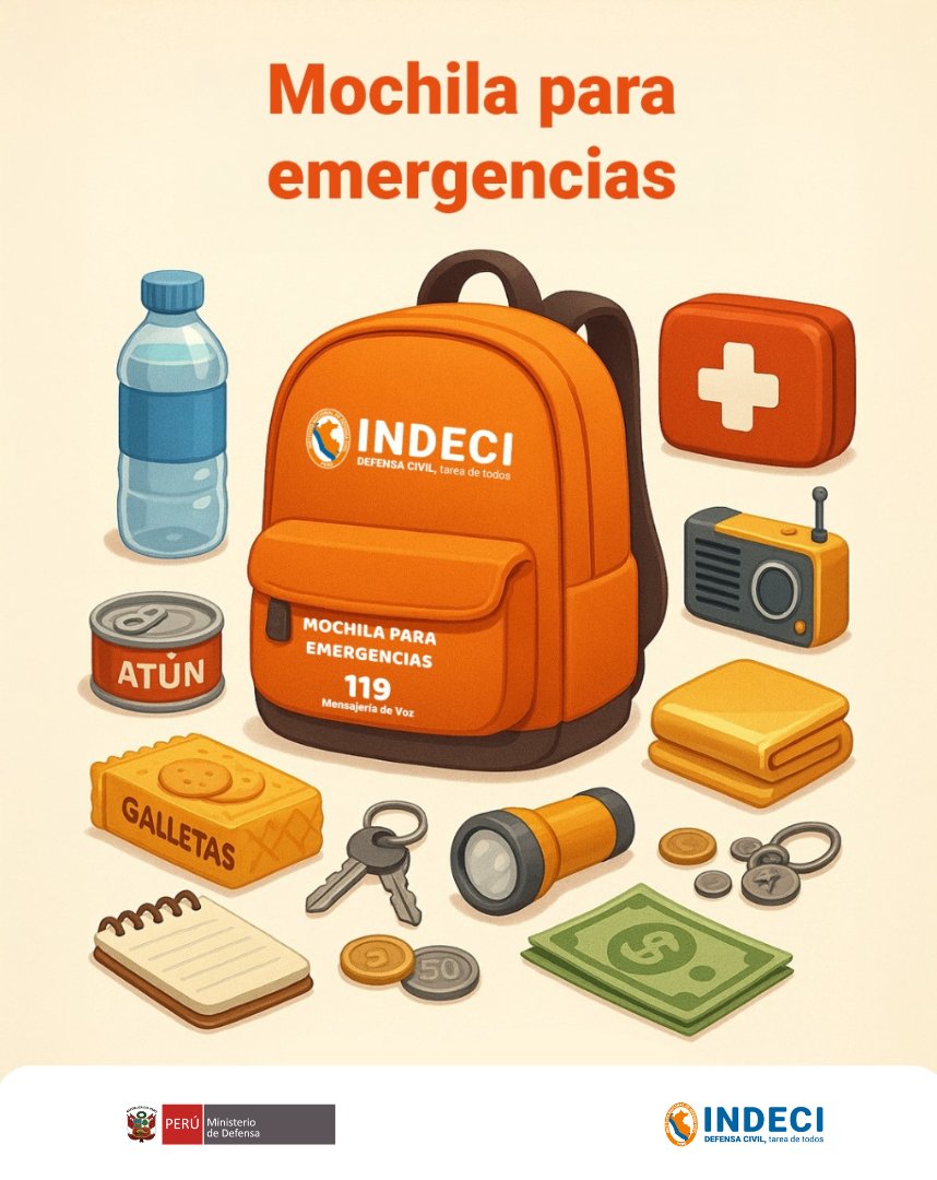 Recuerda elaborar la #MochilaParaEmergencias de acuerdo a las necesidades de tu familia y colócala en un lugar de fácil acceso para la evacuación, podría salvar tu vida luego de una #Emergencia o desastre de gran magnitud. pic.twitter.com/kk7a2Cl83o