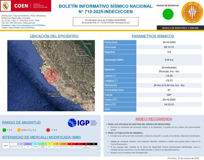 — Centro Sismológico Nacional (@Sismos_Peru_IGP) October 27, 2025