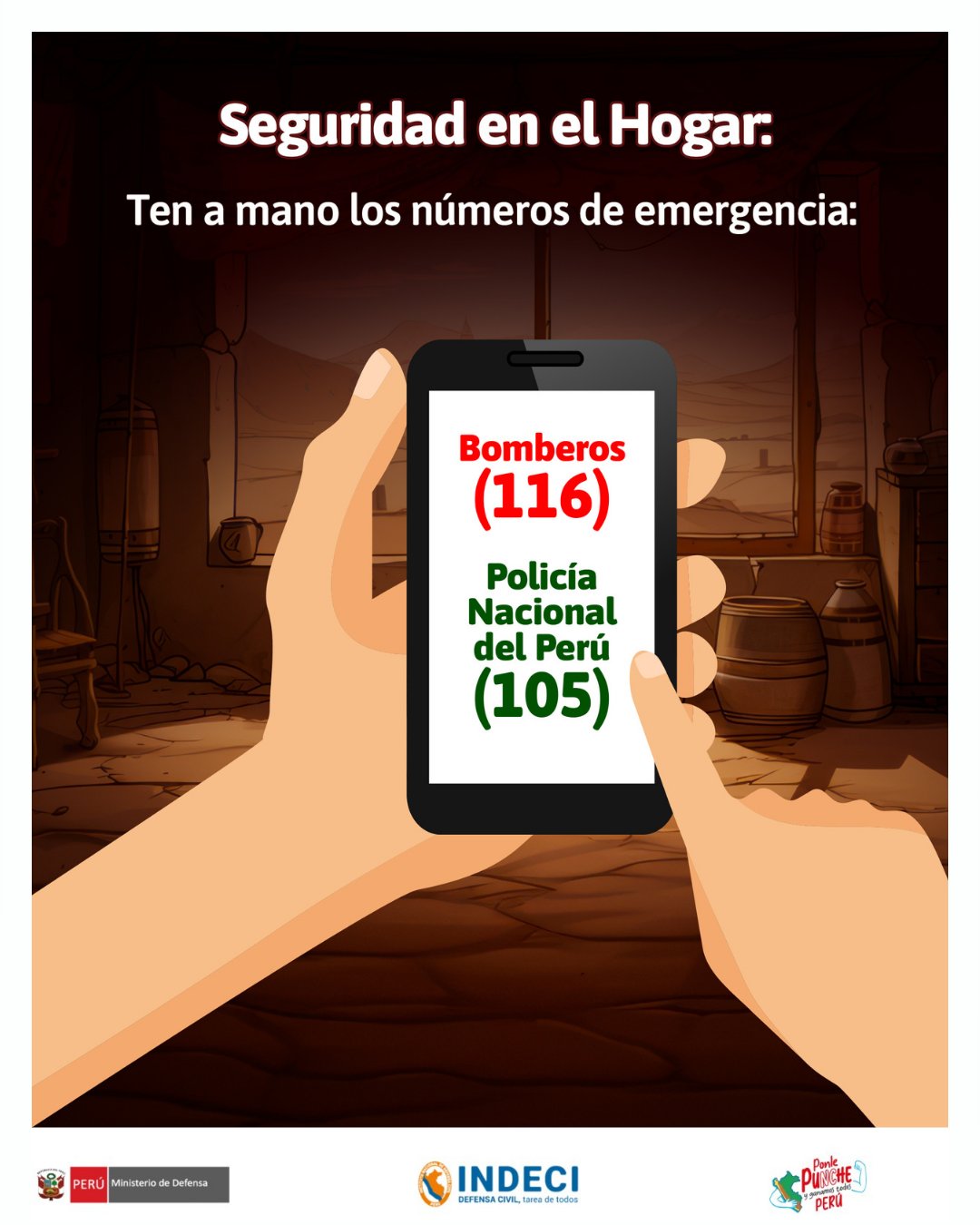 • Llamar a los números de emergencia como: los bomberos 116, Cruz Roja (01) 2660481 y el Sistema de Atención Móvil de Urgencia (SAMU) 106.