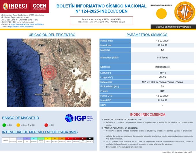 La entidad encargada de llevar el registro de cada temblor en el país es el Instituto Geofísico del Perú (IGP). Asimismo, entrega información oficial cada vez que ocurre un sismo mediante sus cuentas de redes sociales.