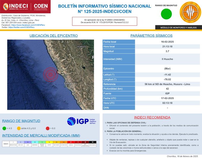 SISMO EN REGISTRADO EN HUACHO, HUARA EN LIMA
