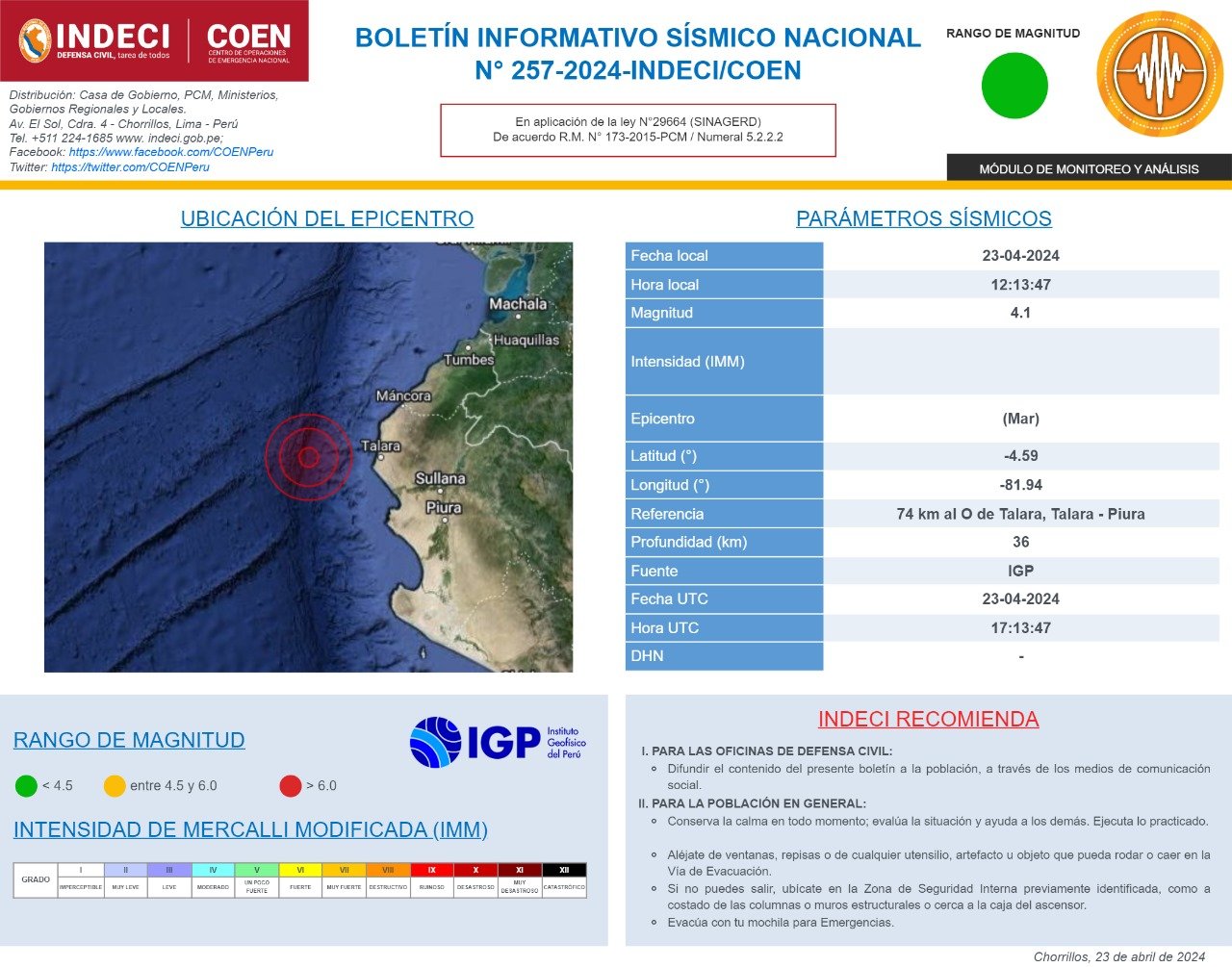 Información de INDECI sobre el sismo ocurrido en Moyobamba, San Martín.
