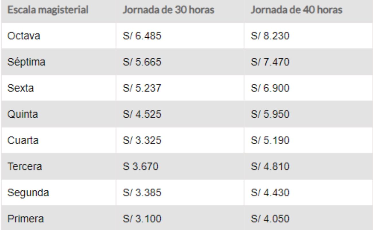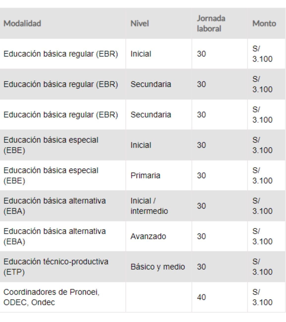 Con respecto a los docentes contratados que cuenten con una jornada laboral de 30 horas en los centros educativos, recibirán un sueldo mensual de 3.100 soles. Ahora, en caso tengan menos horas trabajando, el pago será proporcional con un acuerdo previo.