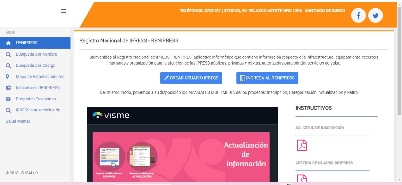 Susalud puso a disposición de la ciudadanía el Registro Nacional de Instituciones Prestadoras de Servicios de Salud (Renipress) y el Registro de Sanciones aplicables a las IAFAS, Ipress y UGipress con el objetivo de verificar si estos establecimientos están verificadas o sancionadas por la entidad de salud.