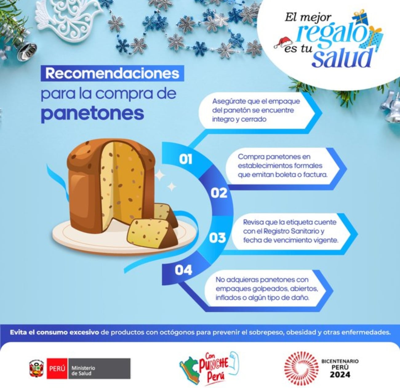 La Dirección General de Salud Ambiental (Digesa) a través del Ministerio de Salud compartió en sus redes sociales las recomendaciones para el público al momento de comprar un panetón. A continuación, te compartimos las sugerencias que entregó el organismo de salud: