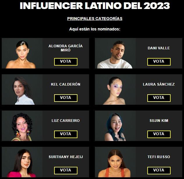 Según lo refleja y expresa el propio portal del evento, Alondra García Miró figura como aspirante a ganar el premio a “Influencer Latino 2023″, y solo podrá obtenerlo si sus seguidores o el público que lo desee, la elige de manera virtual accediendo a la plataforma oficial.