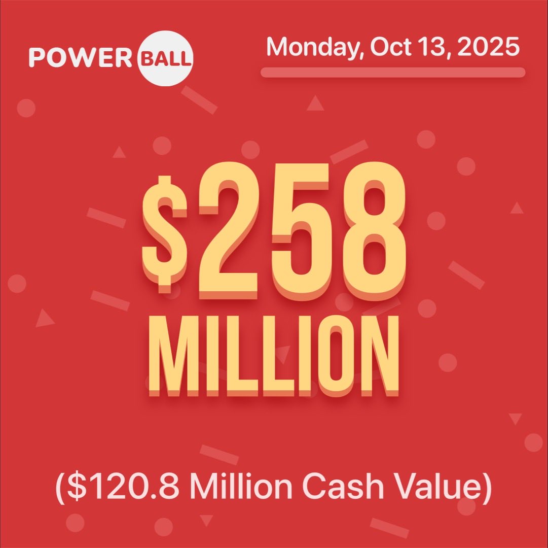 El pozo acumulado del Powerball para el sorteo de hoy será de 258 millones de dólares.