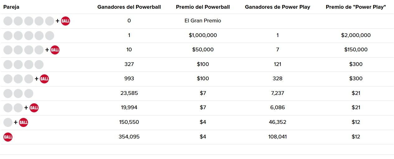 Cada sorteo se compone de cinco bolas y la Powerball extra. El premio mayor, en este caso, es para el participante que acierta todas las bolillas.