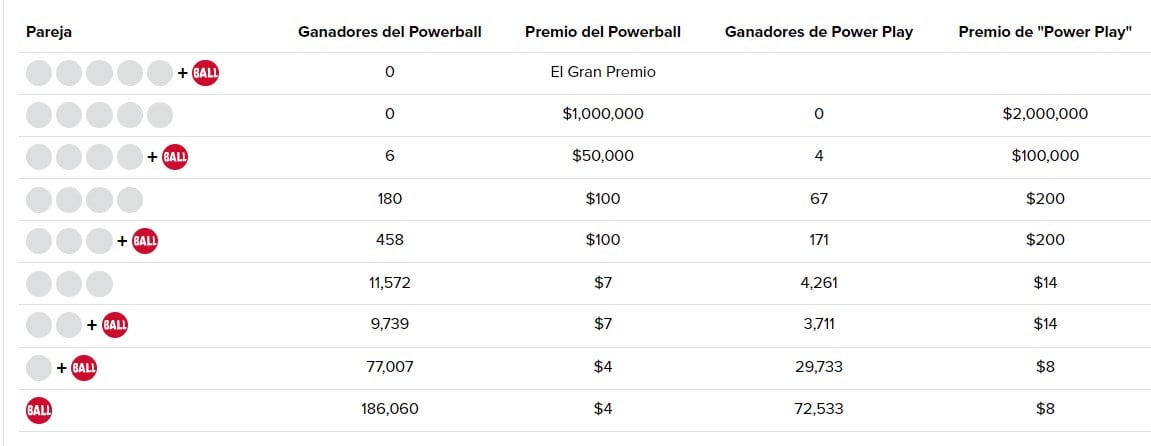 Cada sorteo se compone de cinco bolas y la Powerball extra. El premio mayor, en este caso, es para el participante que acierta todas las bolillas.