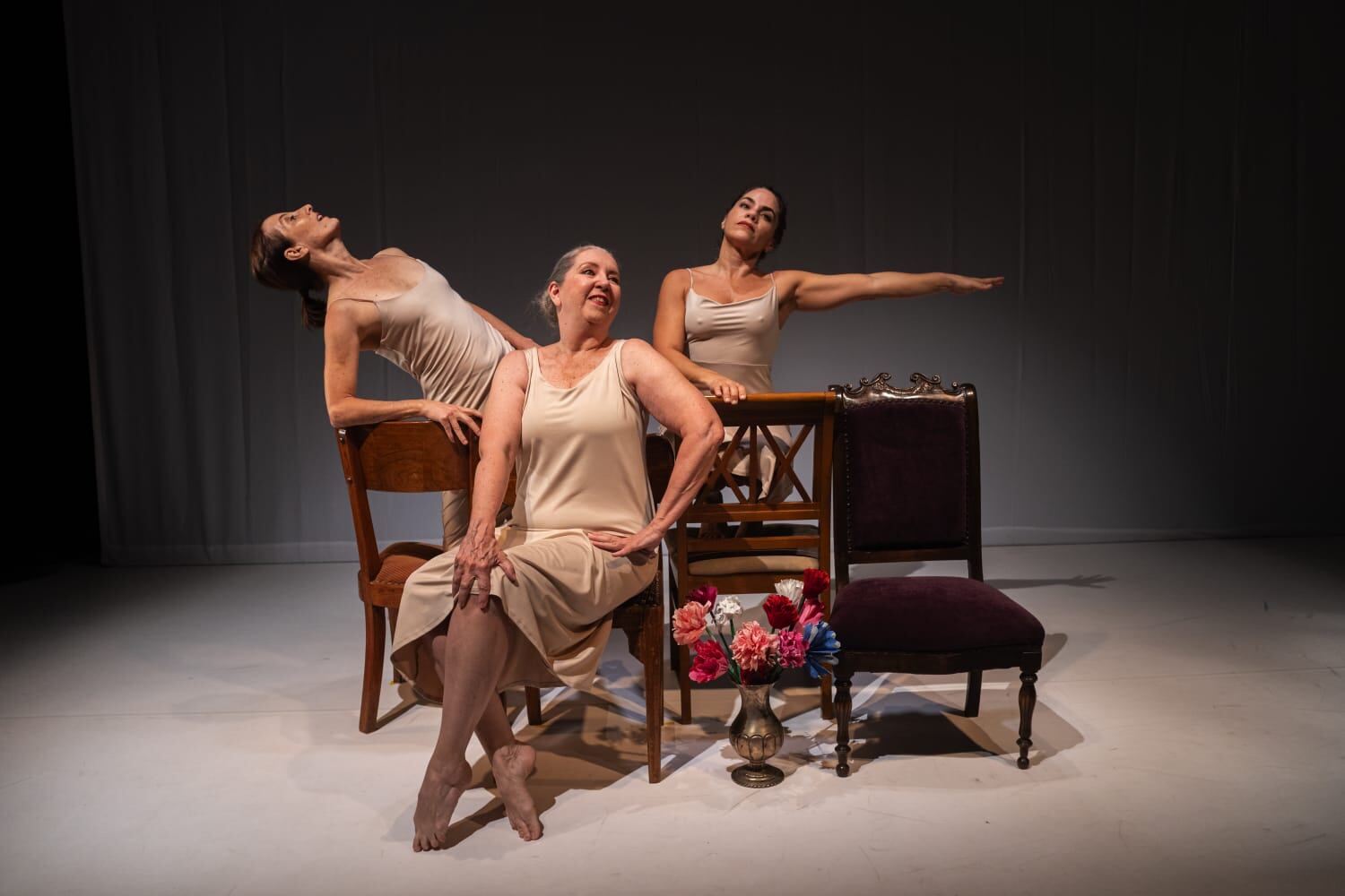 La obra se compone de 13 escenas bailadas en formato de solos y tríos, por las reconocidas bailarinas Karine Aguirre-Morales, Ximena Larco y Maureen Llewellyn-Jones. Cada una de las piezas está sustentada en una sublime y femenina estética planteada a manera de grandes cuadros pictóricos, materializados por los audiovisuales de Carlos Paz y las pinturas de Hosefa Tavolara.