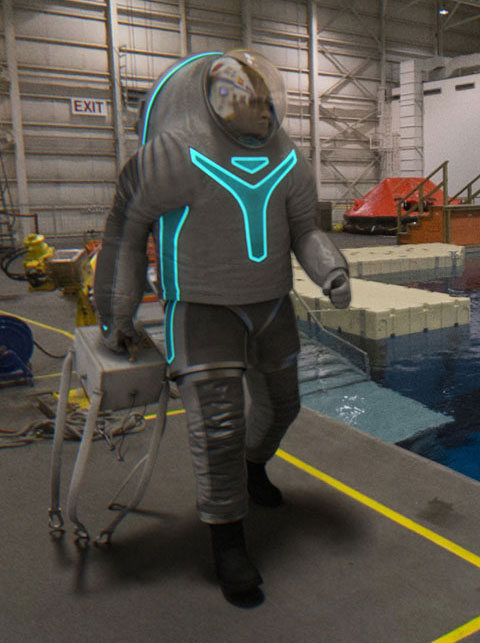 Este diseño, según la NASA, rinde homenaje a los exitosos trajes del pasado y a la vez incorpora elementos sutiles que se usarán en el futuro. Los alambres Luminex y parches de emisión de luz permitirán identificar a los miembros de la tripulación. Tiene pliegues para permitir mayor movilidad y paneles antiabrasión en la parte inferior del torso.