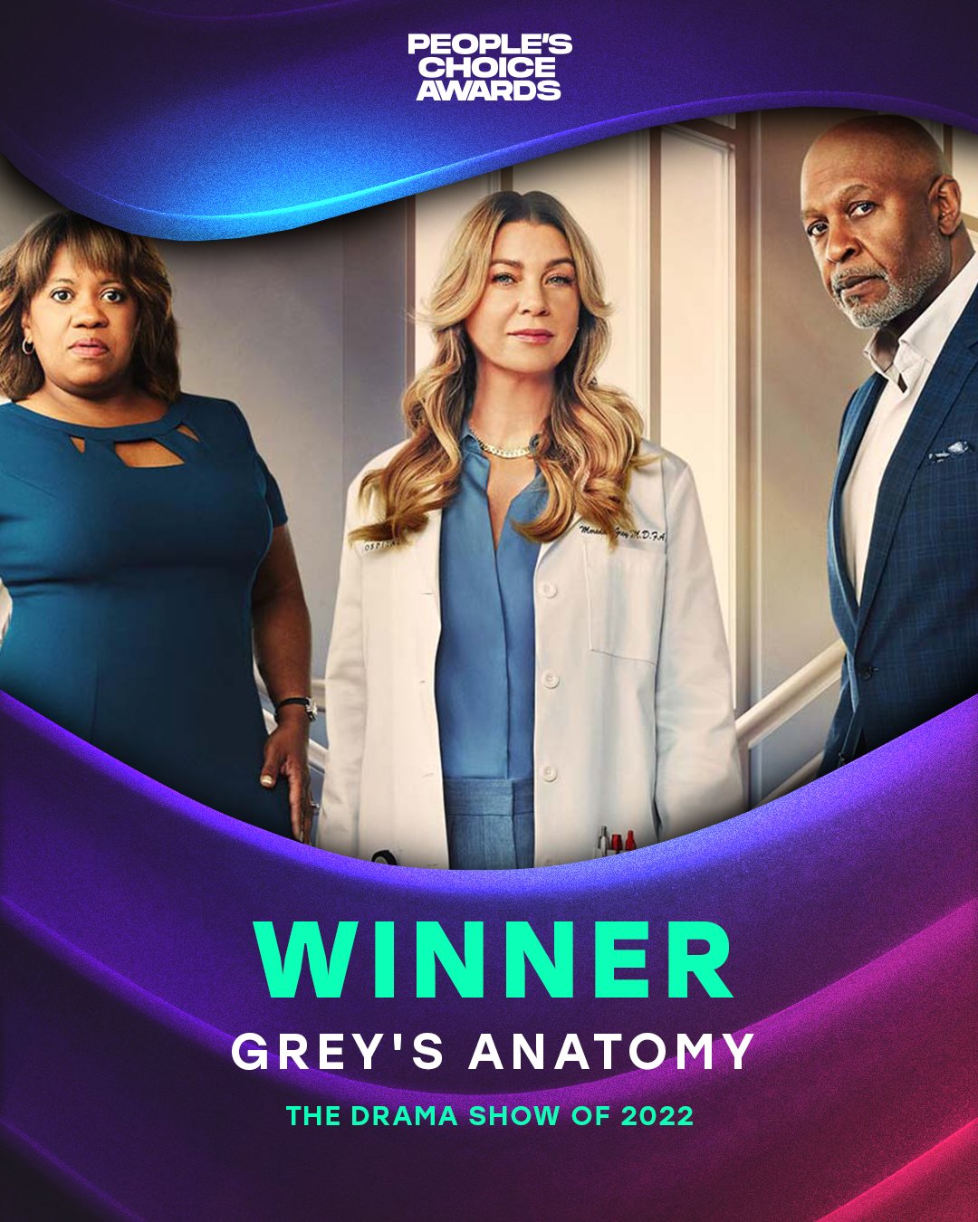 Few stars on television are doing it like Ellen Pompeo: congrats on winning the People's Choice Award for The Female TV Star of 2022!! #PCAs pic.twitter.com/4DAu597bUY